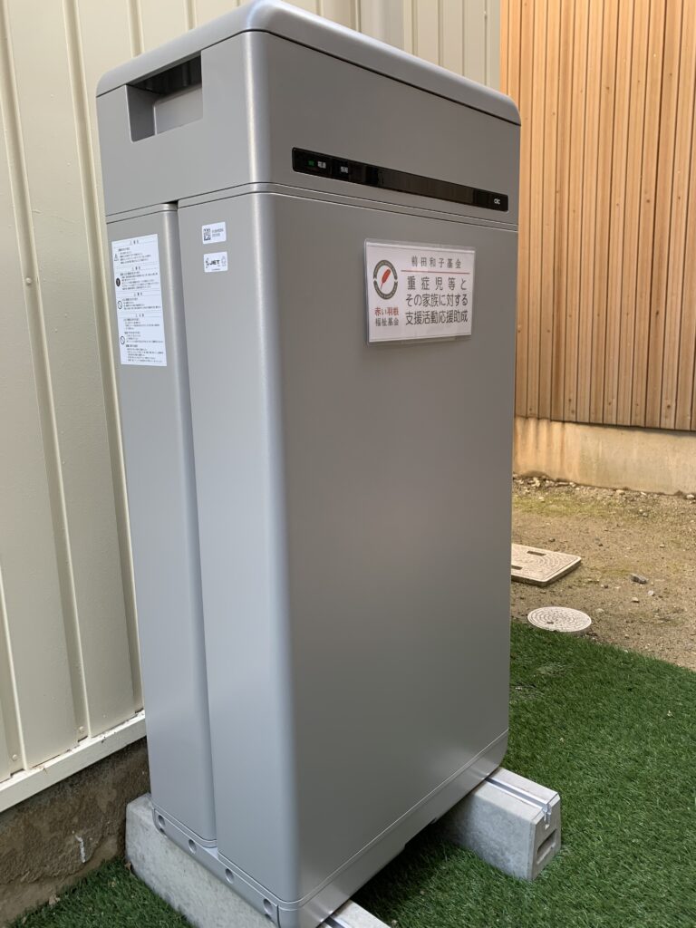 中央共同募金会様の「前田和子基金 重症児等とその家族に対する支援活動応援助成」第4回より頂いた助成金を使用し、太陽光パネルと蓄電池の設置が完了しました。